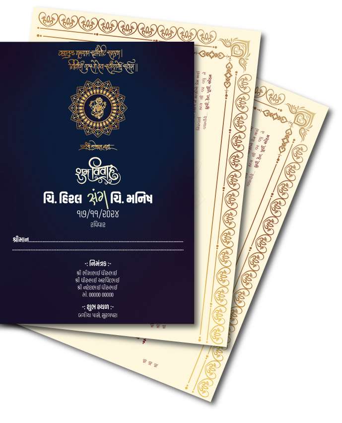 Gujarati weddings are rich with rituals, blessings, and family involvement. Kankotri JG-4 is designed to reflect this cultural richness through its traditional structure, balanced layout, and authentic Gujarati typography. Every detail—from decorative elements to text alignment—respects the conventional format of a Gujarati lagna kankotri, making it suitable for elders and younger guests alike.