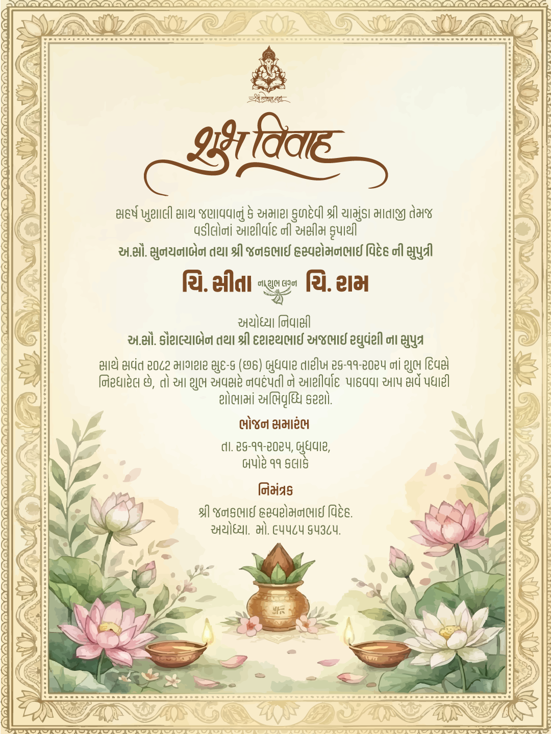 Sagai Invitation Card JG-1 – Customizable Engagement Invitation Card Template in Gujarati